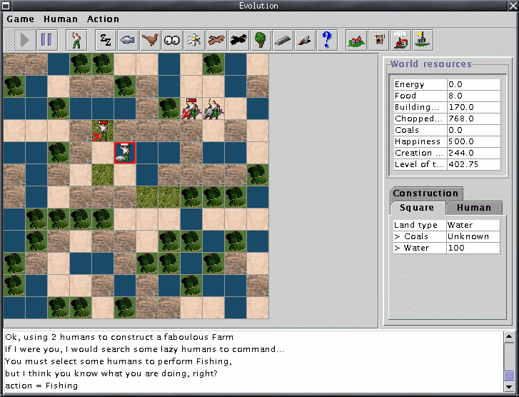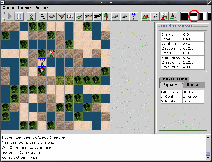 As you can see, the amount of Food has dropped to zero. At this point the humans