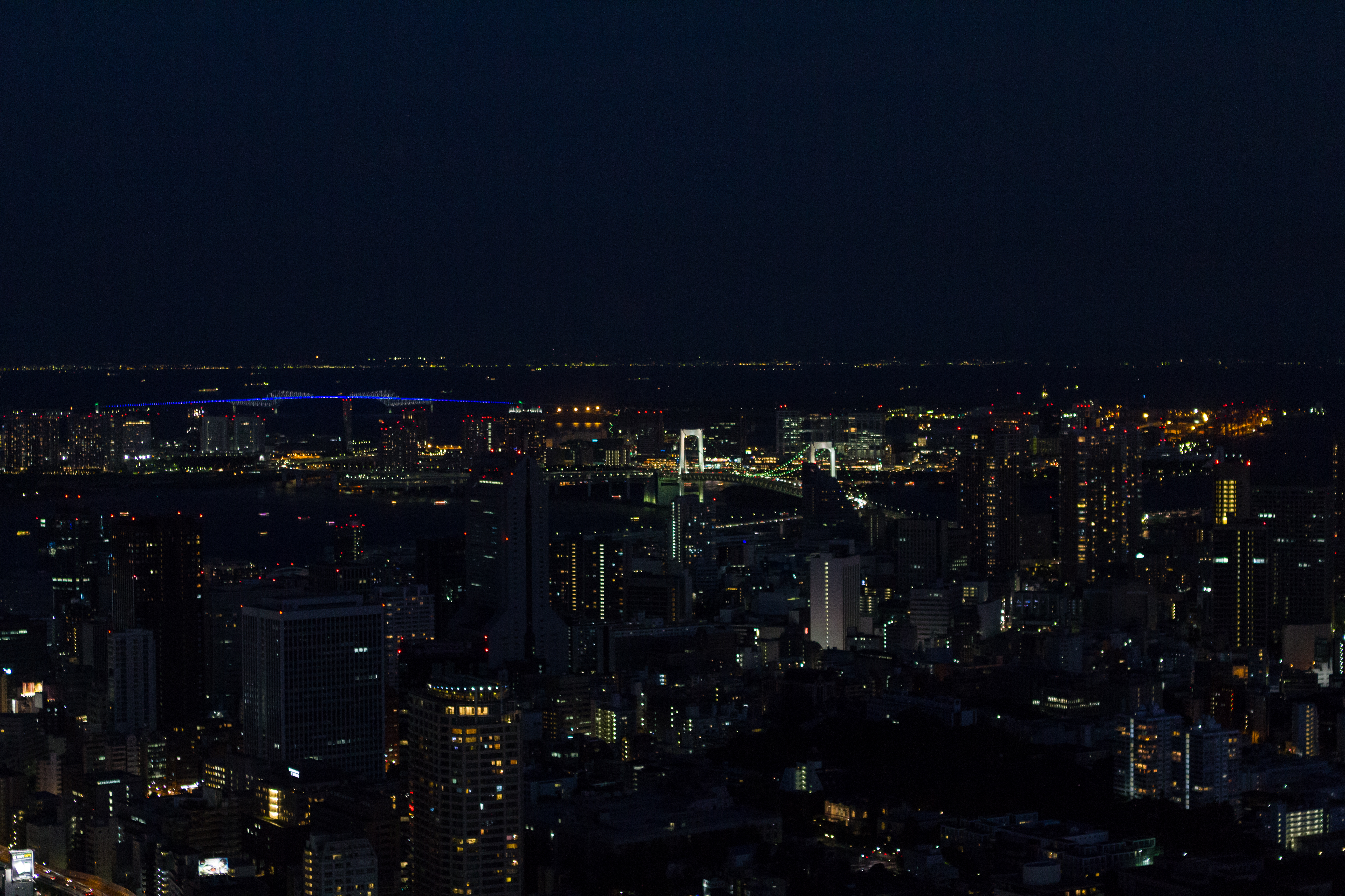 De Rainbow Bridge is heel goed zichtbaar vanaf het dakterras van de Mori Tower